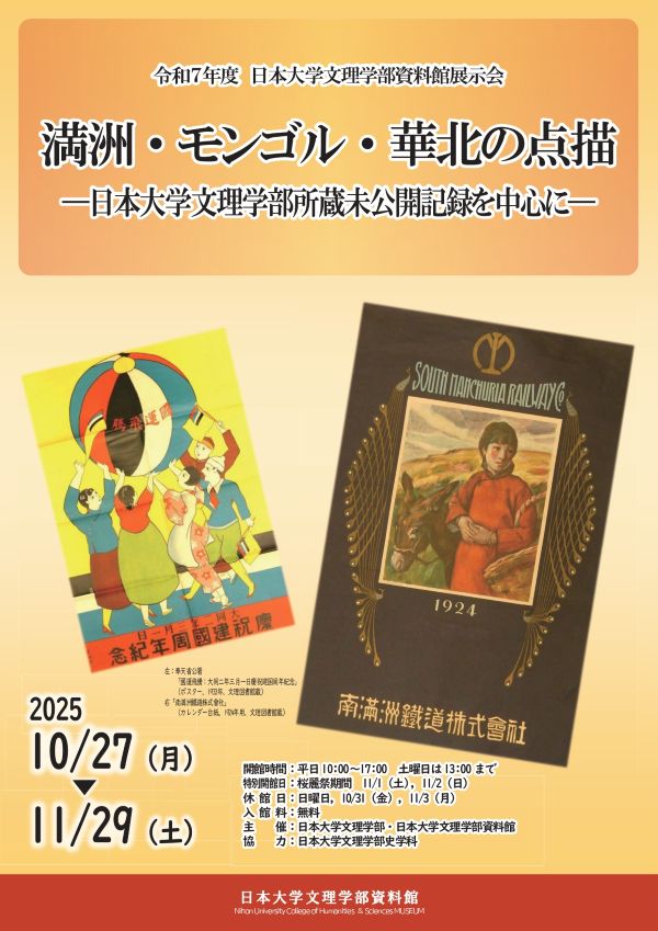 【企画展】「満州・モンゴル・華北の点描 −日本大学文理学部所蔵未公開記録を中心に−」の開催について
